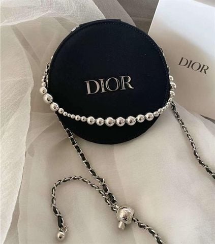 Túi Gift DIOR Tròn Vanity Kèm 2 Dây Đeo Màu Xanh